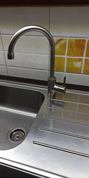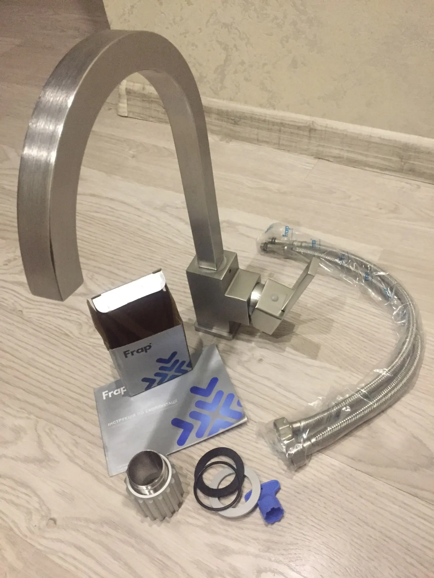 Товар пришёл в целостности и сохранности. Смотрится стильно и эффектно Неудобная ручка - очень тугая, резко открывается и получается сразу большой напор воды. А так как кран высокий, зальётся полкухни брызгами. Пользуемся чуть больше месяца, ручка слегка расходилась, но все равно оооочень туго. И косяк в том, что само основание крана плотно не закручивается. Как бы мы не старались, он при нажатии на ручку или повороте гусака поворачивается. Ещё в комплекте шли шланги, но нам пришлось купить длинее.