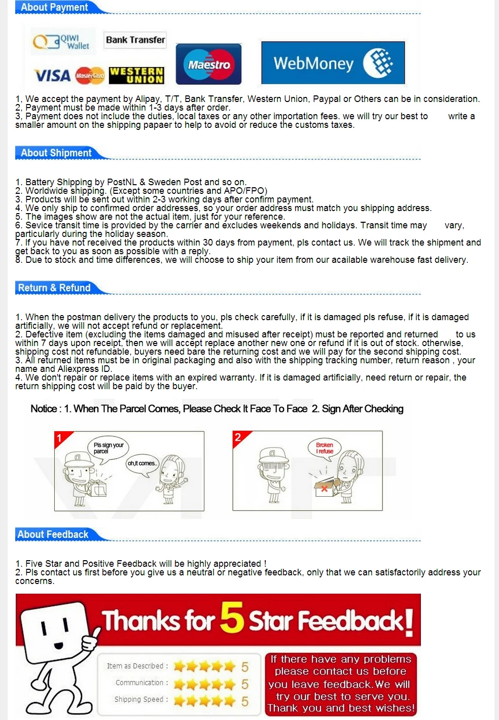 Внимание:-Зарядка аккумулятора перед использованием-Используйте только специальное зарядное устройство-- Держать клеммы батареи в чистоте-Всегда храните аккумулятор в сухом месте-Не замыкайте батарейный блок-Не разбирайте батарейный блок-Не подвергать аккумулятор высокой температуре