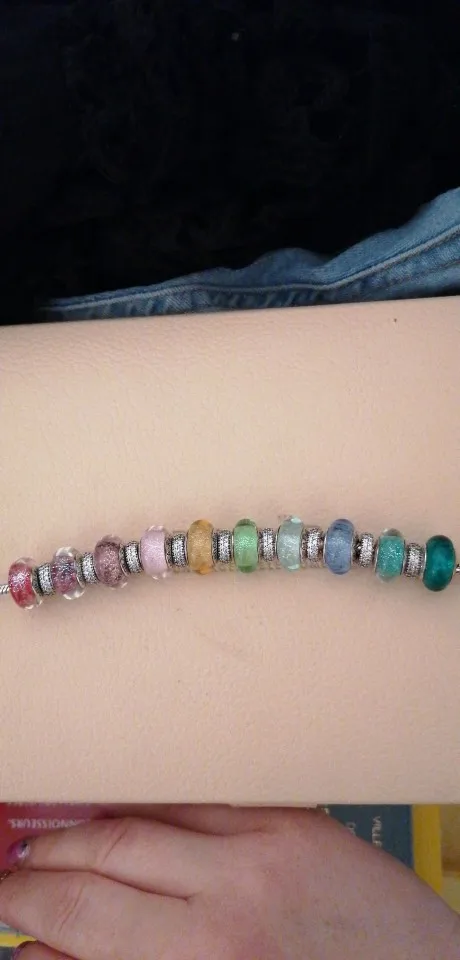 Красиво, как на фотографиях. Рекомендуем покупать. Продавец добавил 2 шарма в форме сердца, они не серебристые, но очень милые. Посылка будет доставлена быстро.