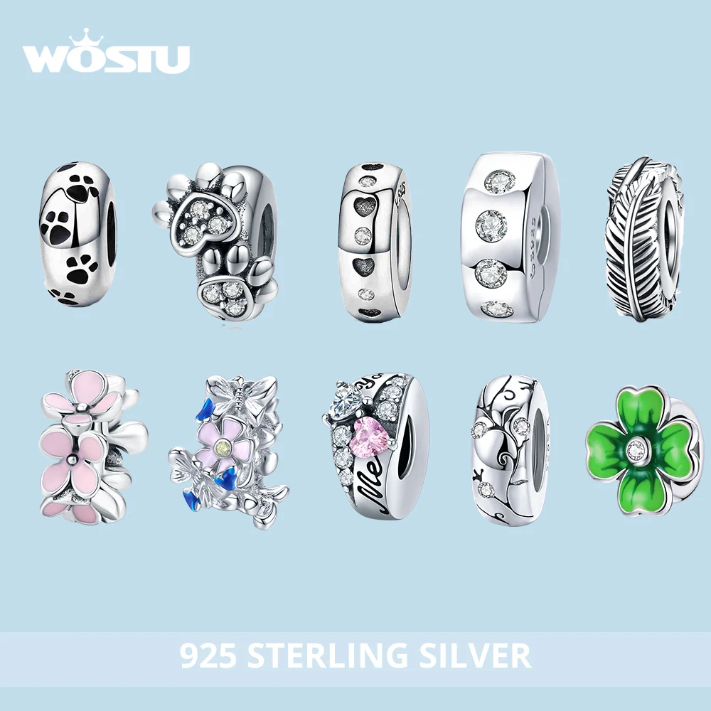 WOSTU Настоящее серебро 925 проба 15 тилей сердце ясные CZ Spacer Бусины подходит Wostu оригинальный браслет ювелирные изделия CQC593