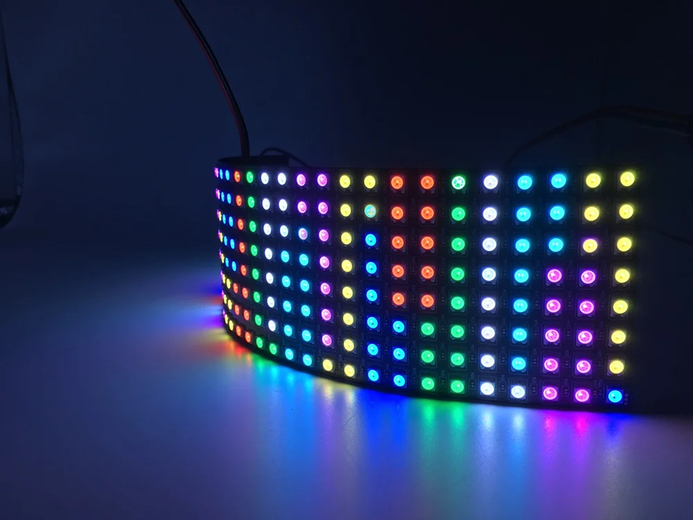 Три размера:8*8, 64 светодиода, 8 см * 8 см16*32, 256 светодиодов, 16 см * 16 см8*32, 256 светодиодов, 8 см * 32 смПикселей WS2812 светодиодная цифровая Гибкая световая панель (ws2811 контролируемый ИС),DC5V входРаботает с программируемым sd-контроллером (не входит в комплект), он может сделать гибкий светодиодный экранArduino IC цифровая Адресуемая Мечта Цвет RGB светодиодная лентаСовместимость с Arduino. Вы можете управлять полоской с помощью программируемого arduino.
