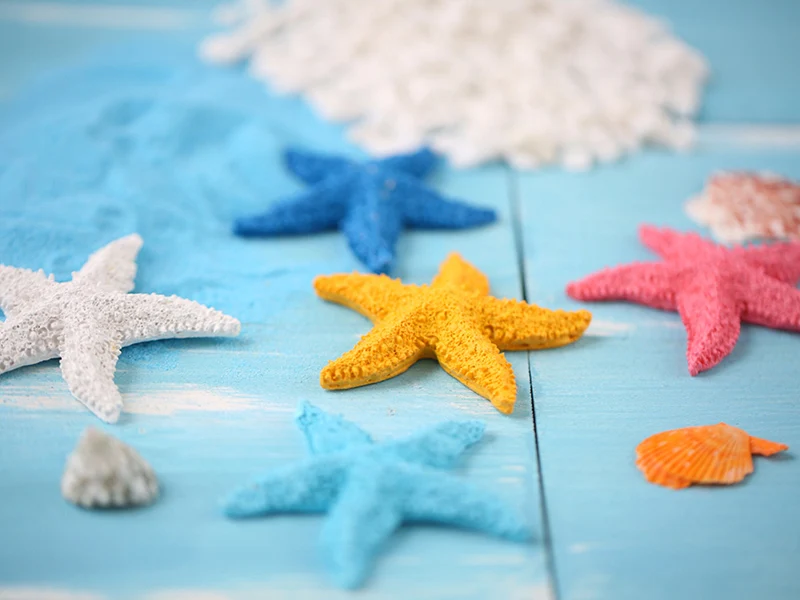 Изысканные орнаменты, естественные ракушки, имитация раковины, смола, морская звезда, синий песок, пляж, ремесло для фотосъемки