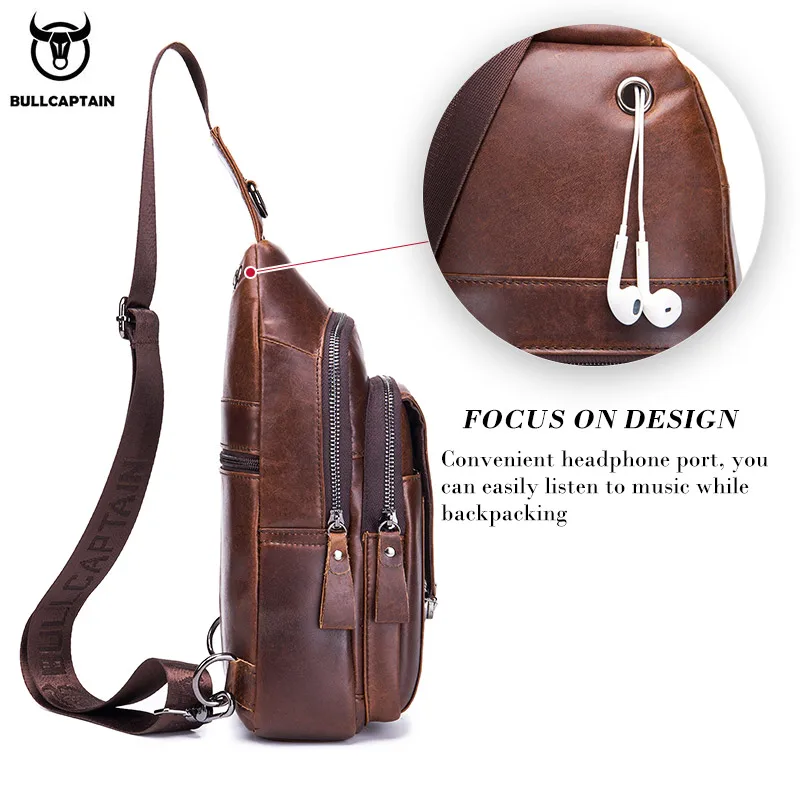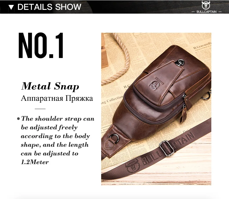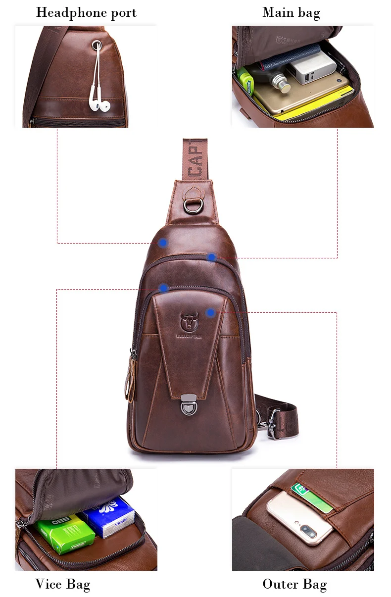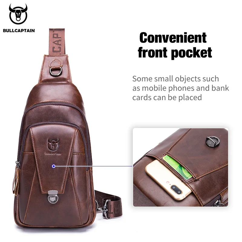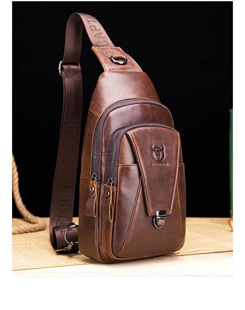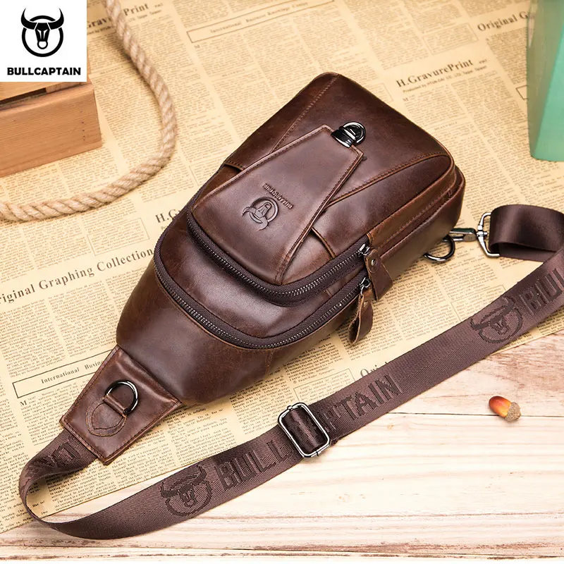 Нагрудная сумка BULLCAPTAIN из натуральной кожи, Мужская модная сумка-мессенджер, многофункциональная сумка для карт, мобильный телефон