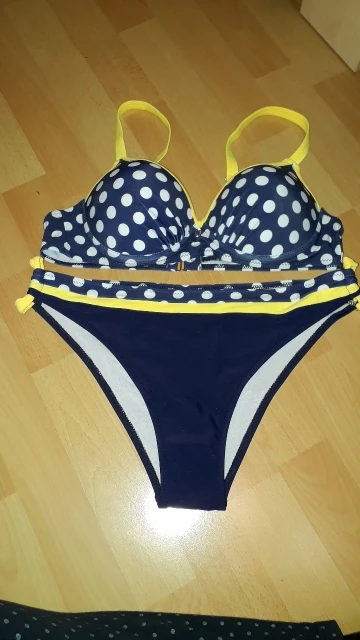 Купальник пришёл быстро, фото соответствует, и что самое удивительное - размер оказался точным. Но верхняя часть была выполнена с небольшим, но заметным браком. Кроме того, на жёлтой отделке два пятнышка. Так что открыла спор, деньги вернули очень быстро. Ставлю четыре звёзды за правильный размер и оперативность.