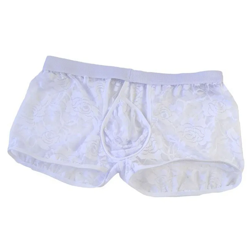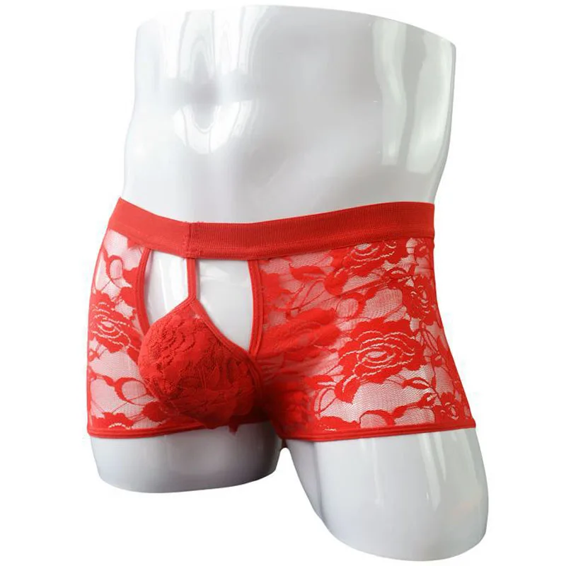 Сексуальные мужские трусы с цветочным кружевом для геев, трусы с вырезами и карманом, нижнее белье для трансвеститов, нижнее белье