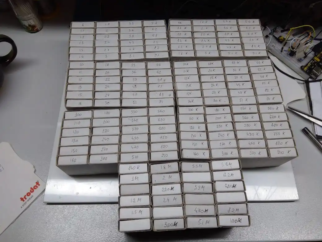 Пришло быстро, оплачивал дополнительно. Первым делом померил параметры, конечно выборочно. Такое ощущение что половина резисторов 1%, а остальные 2-3%, причем отклонение примерно одинаковое у всего номинала. В общем пойдет, осталось разложить по коробочкам.