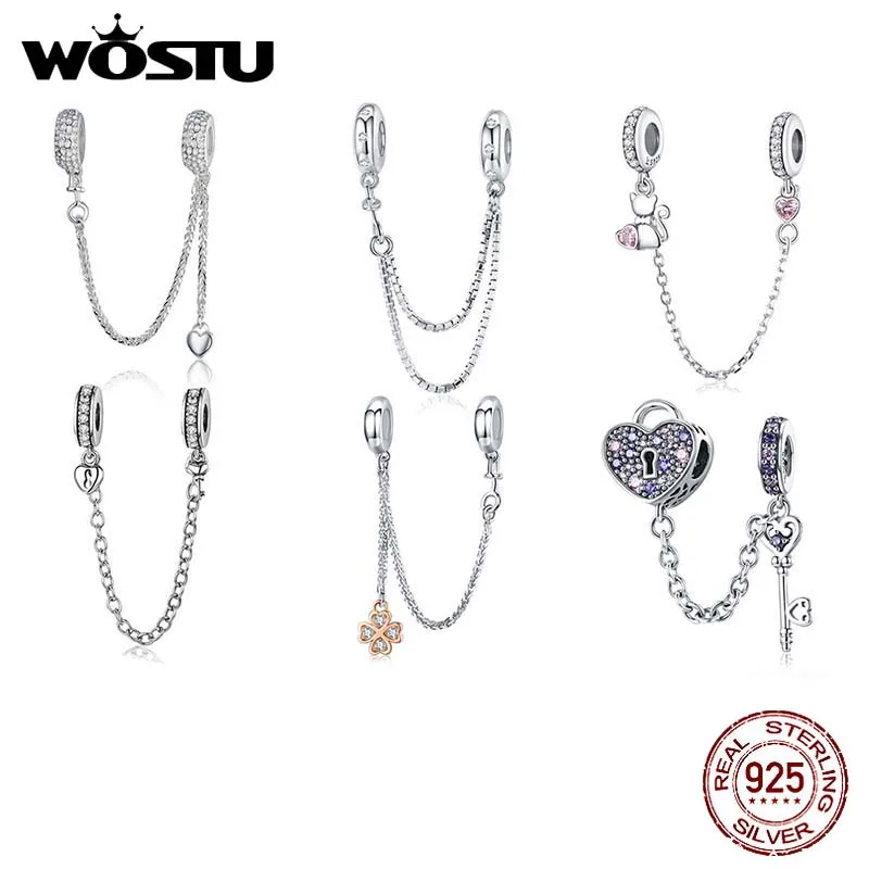 Браслет CQC606, 100% стерлингового серебра 925 пробы с ключом к сердцу, силиконовая безопасная цепь с шармом, подходит для Wostu, оригинальные шарики, ювелирных изделий