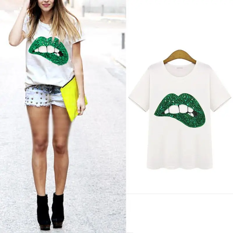 Женская шифоновая блузка с коротким рукавом, круглым вырезом и блестками