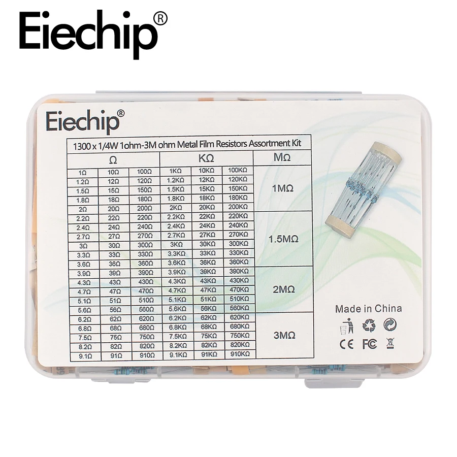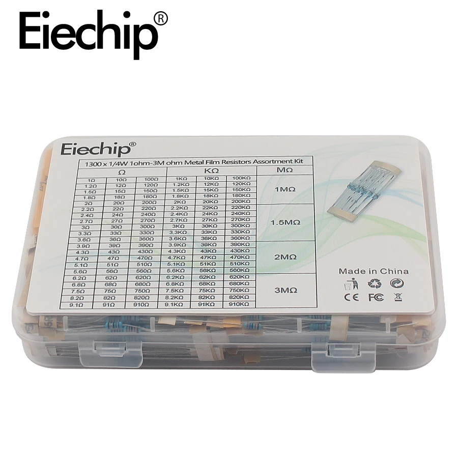 1300 шт. 14 Вт 1% 130 значений * 10 шт. 1 Ом-3 м комплект резисторов для металлической пленки, комплект резисторов, посылка, образец резистора для электронного блока
