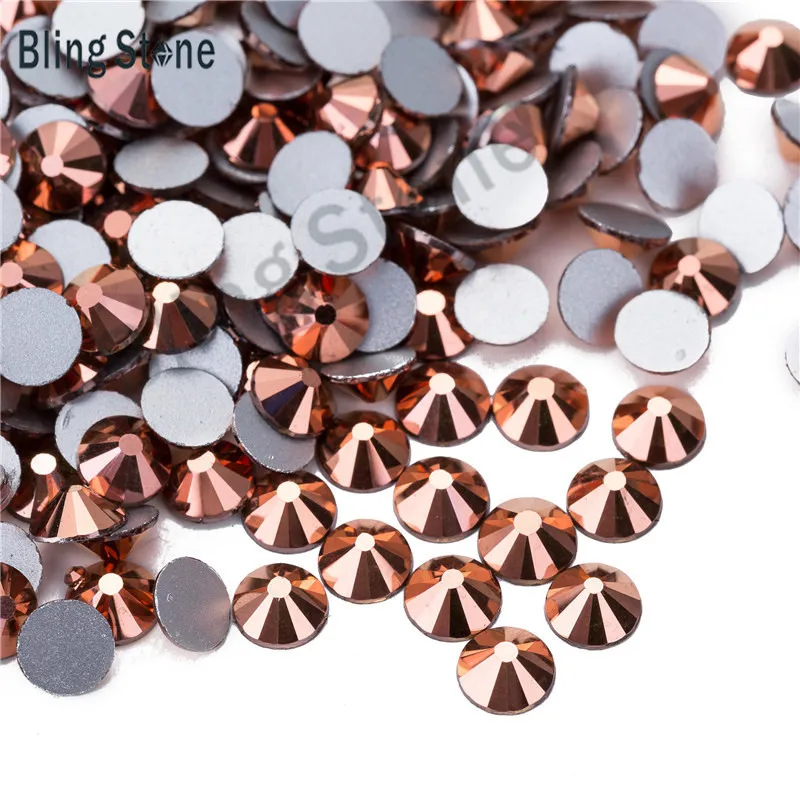 Круглые стразы для дизайна ногтей, стразы из розового золота с плоской задней поверхностью без горячей фиксации, круглые стразы для дизайна ногтей, размер SS3-SS10-SS30
