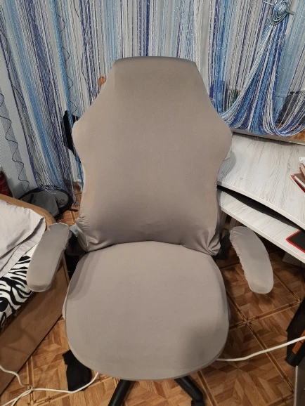 Брал материал спандекс товар супер как на фото , продавец общительный подсказал какой размер подойдет для моего кресла . Товар пришёл за 12 дней . Одел одну часть чехла / на сиденье и подлокотники / Компьютерное кресло COUGAR Armor ONE игровое