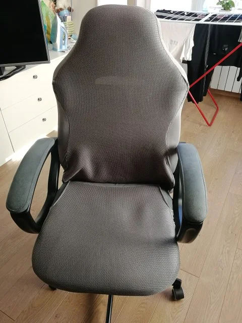 Ну такое себе,очень тонкий материал,на фото видно аж просвечивается,за ним видно спинку кресла. Очень маленький чехол на сиденье,по бокам не налезает до конца,может конечно именно мое кресло,у меня кресло оригинальный DXracer. Из плюсов это доставка,реально очень быстро.