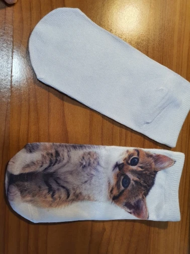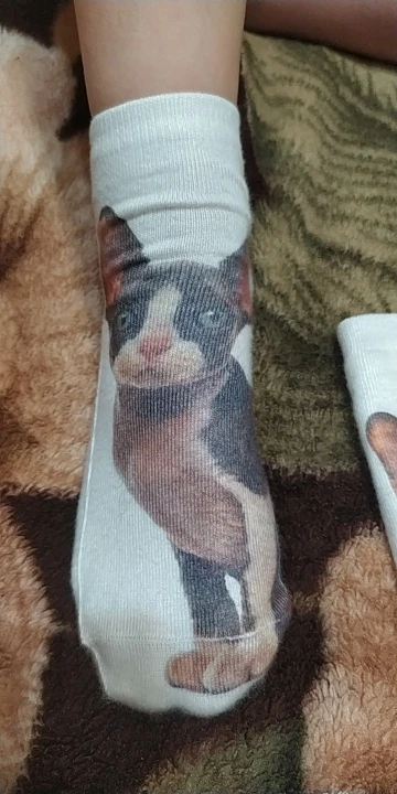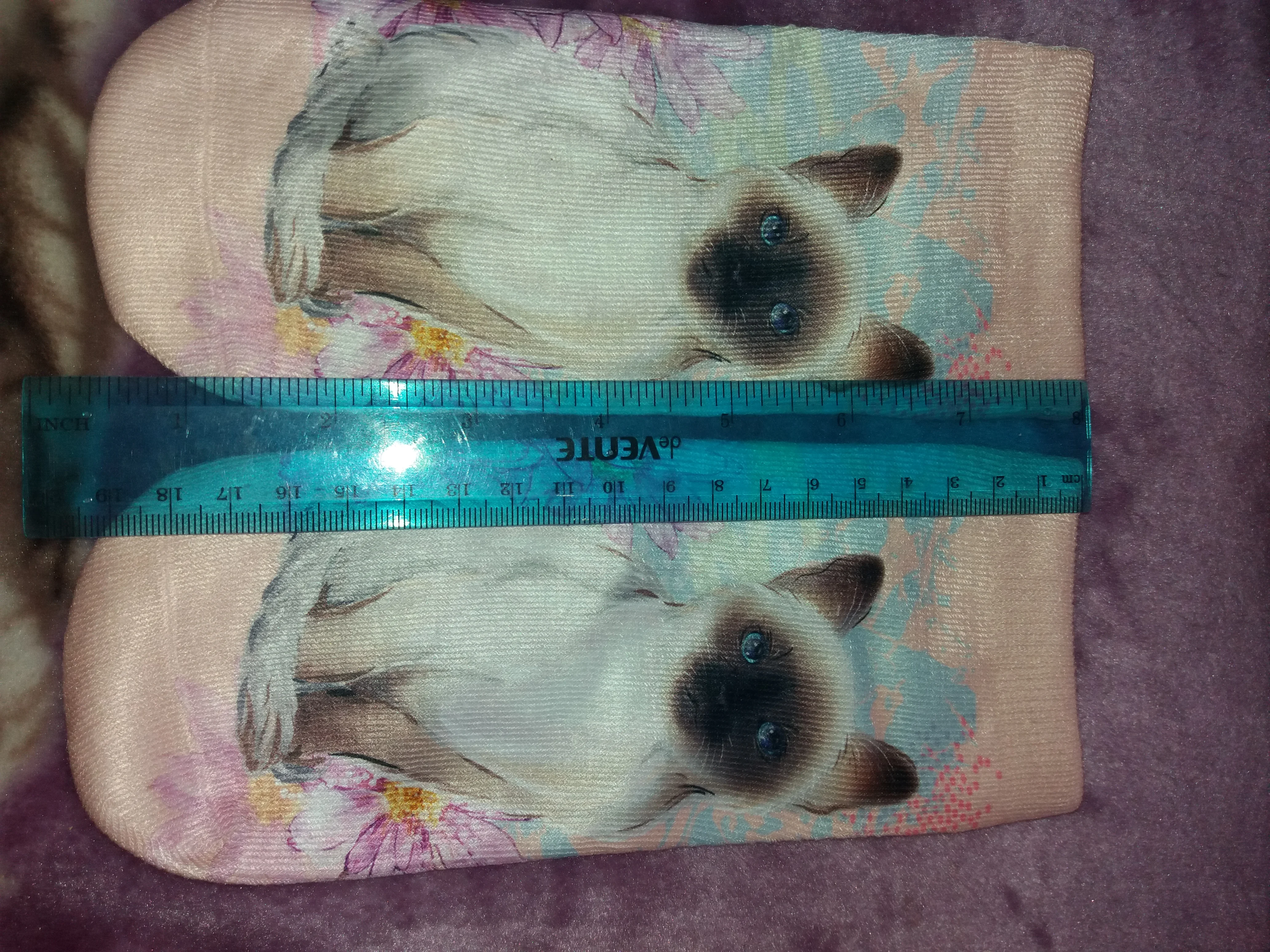 Носки немного маленькие, кроме того, они очень тонкие. Они как лодыжки, и когда вы их надеваете, рисунок сильно растягивается, а кошки выглядят не очень хорошо.