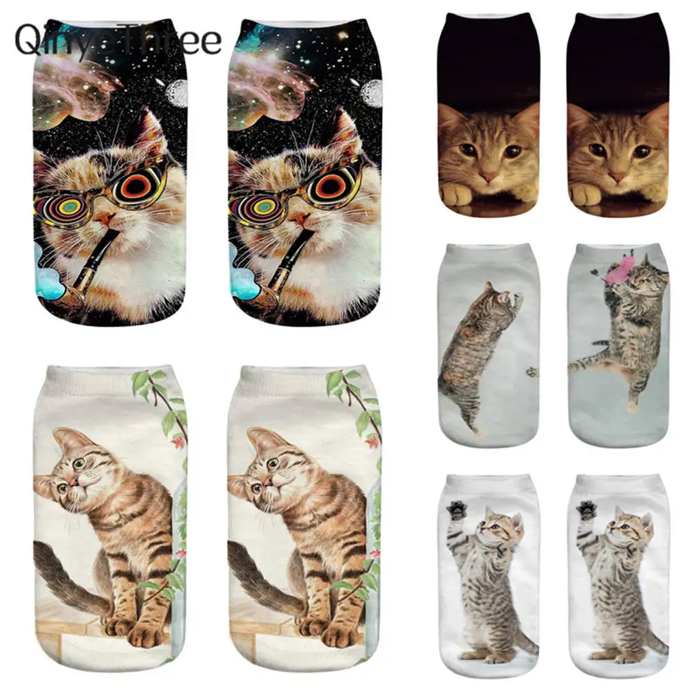Женские Забавные милые носки до щиколотки с 3D-принтом животных, модные носки унисекс с мультяшным котом для женщин, Прямая поставка