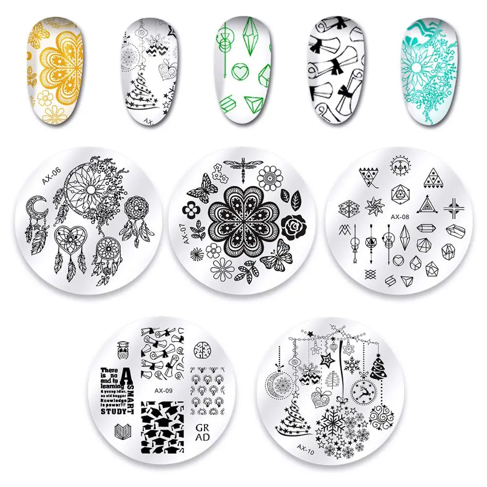 Biutee 10 шт. трафареты для ногтей новогодние елки пластины для стемпинга с рисунками одуванчиков трафарет лебедей для маникюра