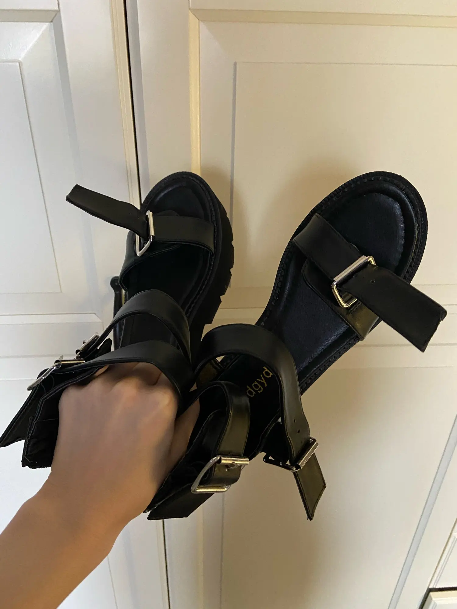 Женские босоножки с ремешком на щиколотке Gdgydh, черные, праздничные, с открытым носком, на платформе, на Высоком толстом каблуке, для лета, Размеры 35-42