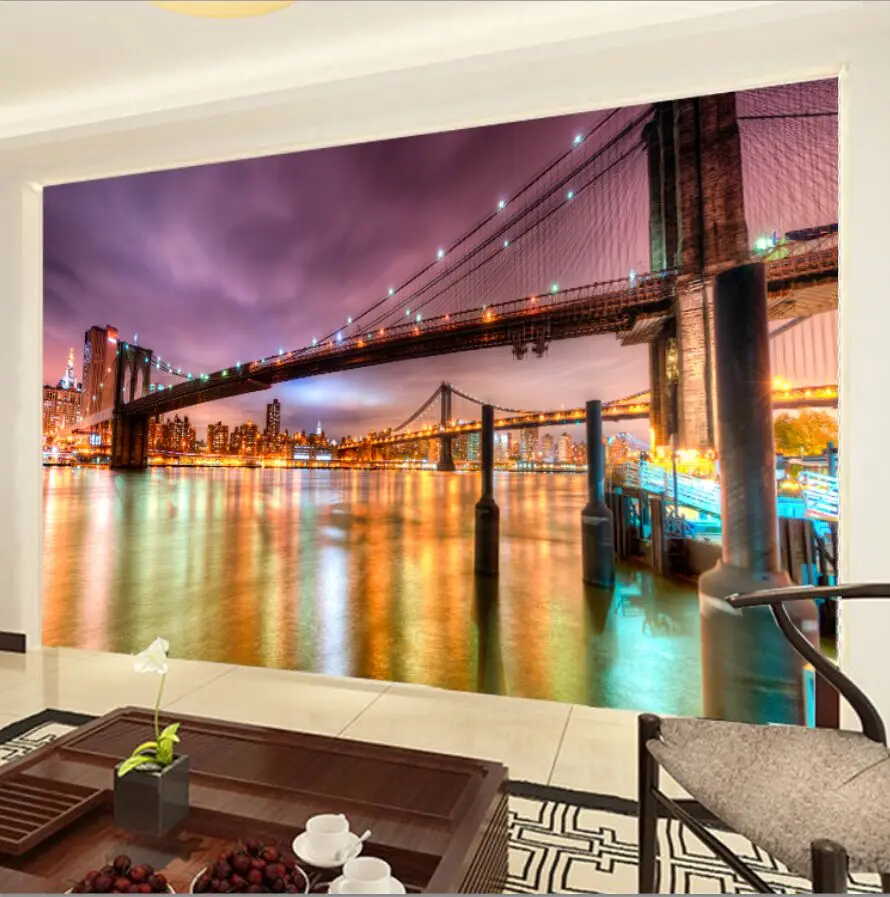 Фрески 3d ночные с мостом Нью-Йорка 8D, Настенные обои для гостиной, фона за телевизором, фрески на стену