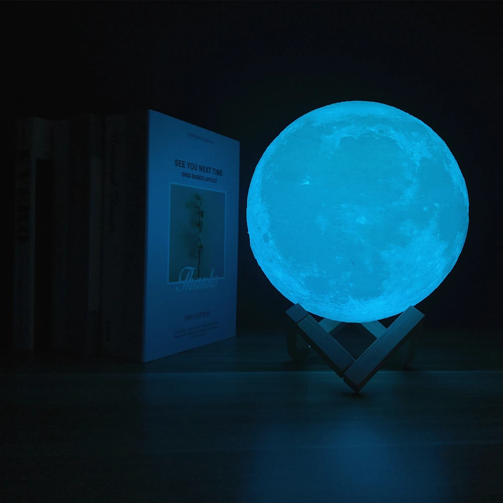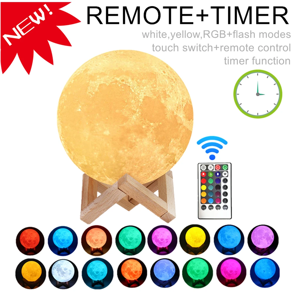 Светильник лунный детский с подставкой и таймером, 22 см, 16 цветов