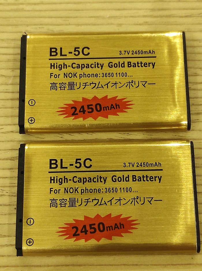 Аккумулятор BL5C BL-5C, 2 шт.лот, золотой, мобильный телефон, аккумулятор для Nokia 2610, 2600, 2300, 6230, 6630, 1100, N70, N71, аккумулятор 5C