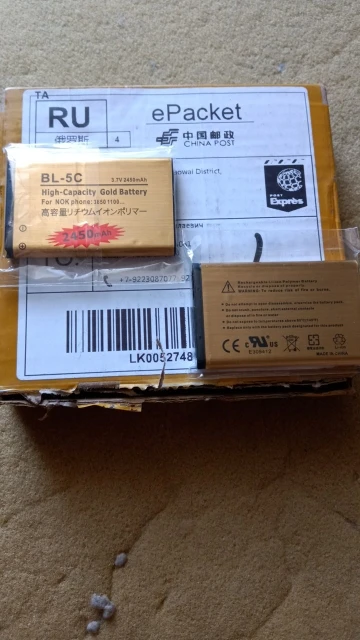 Супер долгая доставка,первый раз настолько долго с epacket. Батарей с виду хорошего качества,на сколько долго их хватит и как быстро они сдуются вопрос. Поставил на Nokia 1280 заряда хватило на 8 дней нормального ползования. Думаю заявленных 2450 тут нет,но хз,ну все равно куда лучше старой оргигинальной батарейки которая уже еле еле 2 дня держала