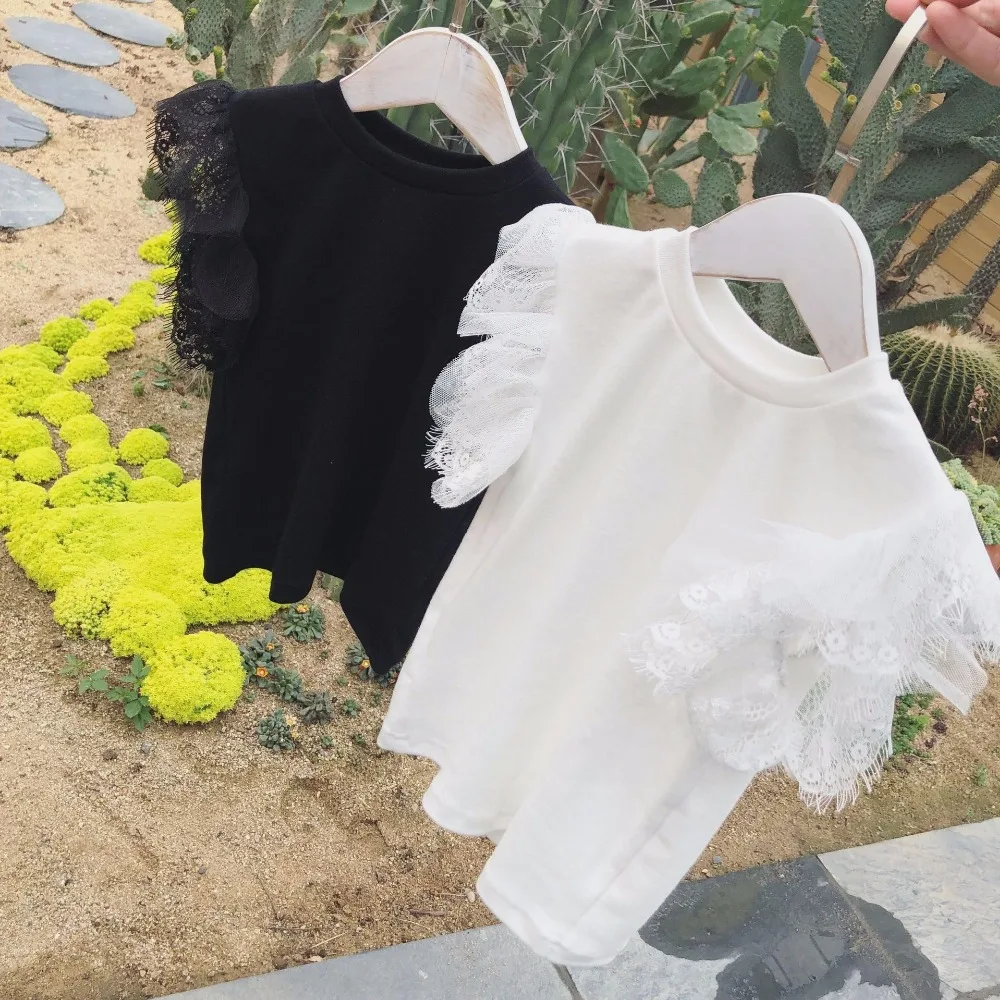 2020 детская Кружевная футболка с короткими рукавами для девочек, летние однотонные топы, футболка, одежда для маленьких девочек в японском и корейском стиле