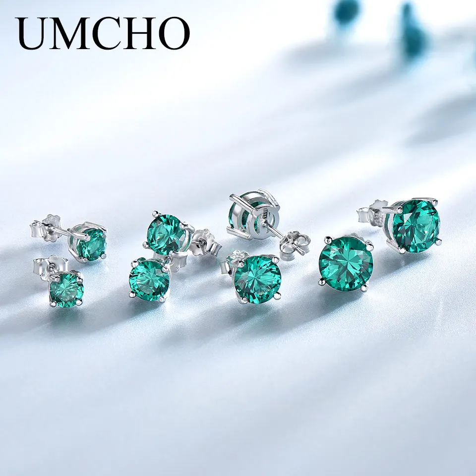 Серьги-гвоздики женские из серебра 925 пробы с изумрудом