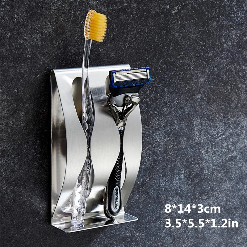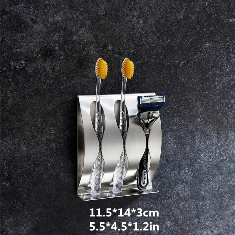 Держатель для зубных щеток, устойчивый к ржавчине Органайзер из нержавеющей стали, липкая настенная полка для зубных щеток в ванной и душе