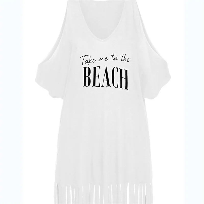 Женская летняя футболка с коротким рукавом, V-образным вырезом и принтом бахромы