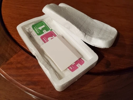 Было доставлено в пенопластовой коробочке, но коробочка, видимо, в пути сломалась. Пленка целая, не погнулась.