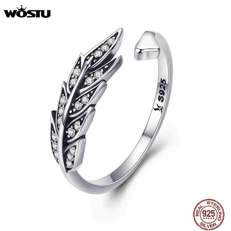 Женские регулируемые кольца WOSTU, винтажные кольца из стерлингового серебра 925 пробы с прозрачными фианитами в подарок, S925