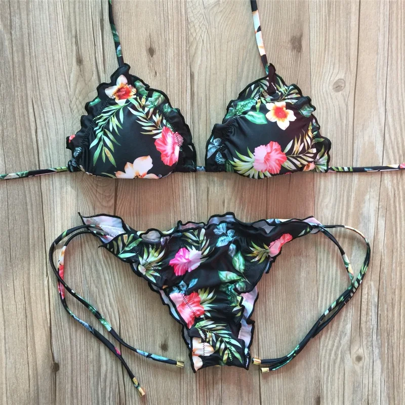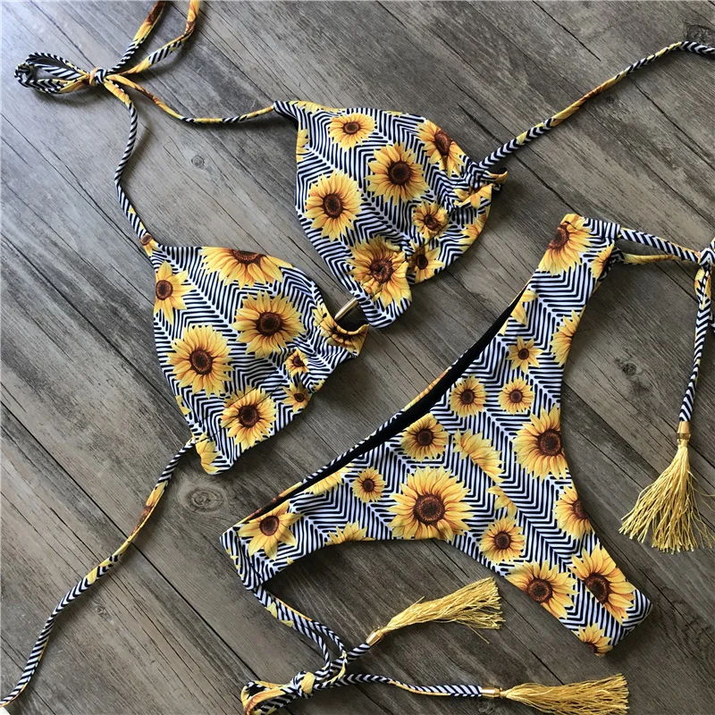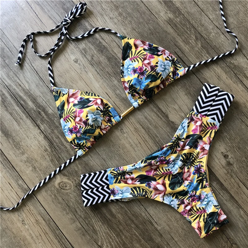 Женский купальник бикини с принтом, купальник с чашками пуш-ап, пикантный треугольный купальный костюм, купальный костюм, бикини, лето 2020