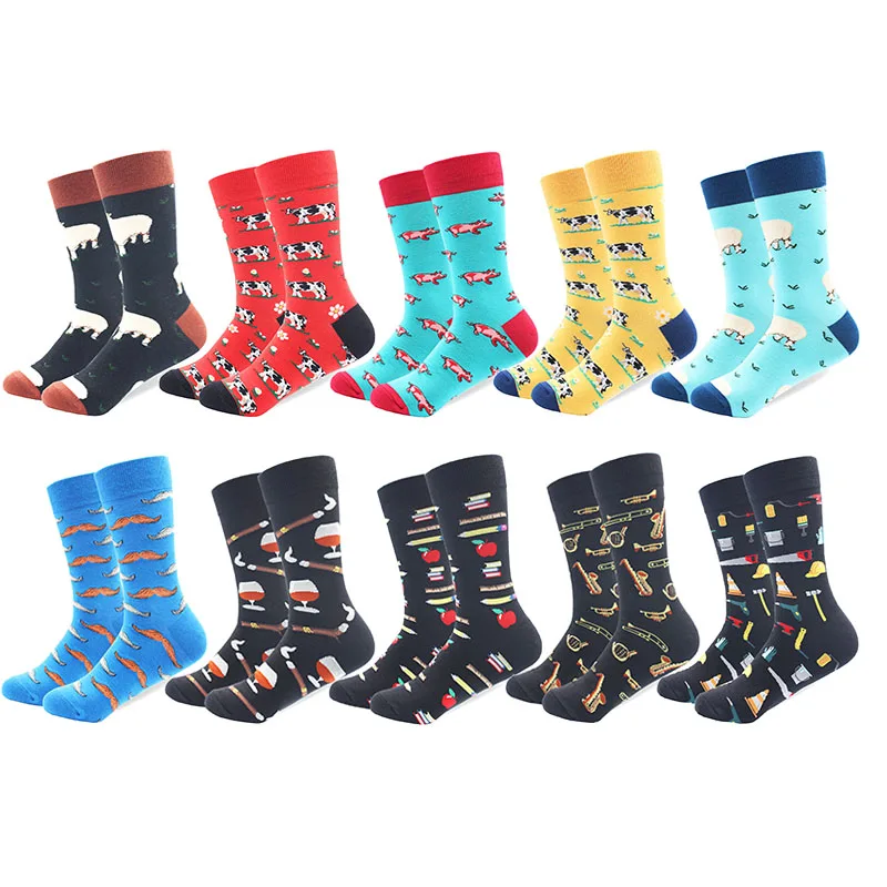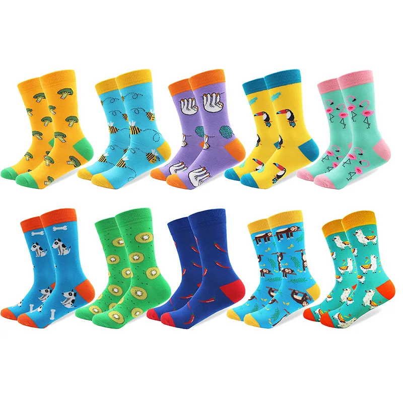 Носки мужские разноцветные из чесаного хлопка, с мультяшным рисунком, в горошек, для скейтборда, животные в полоску, 10 паркомплект