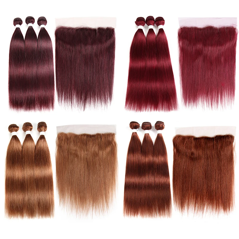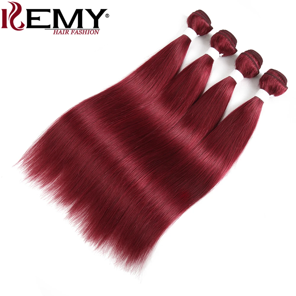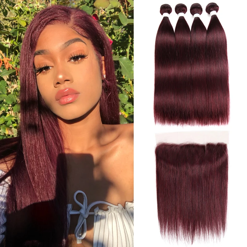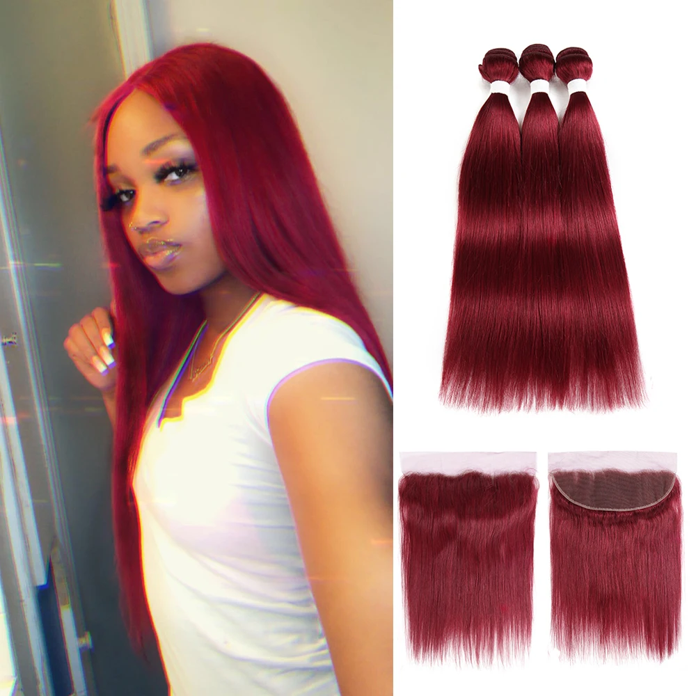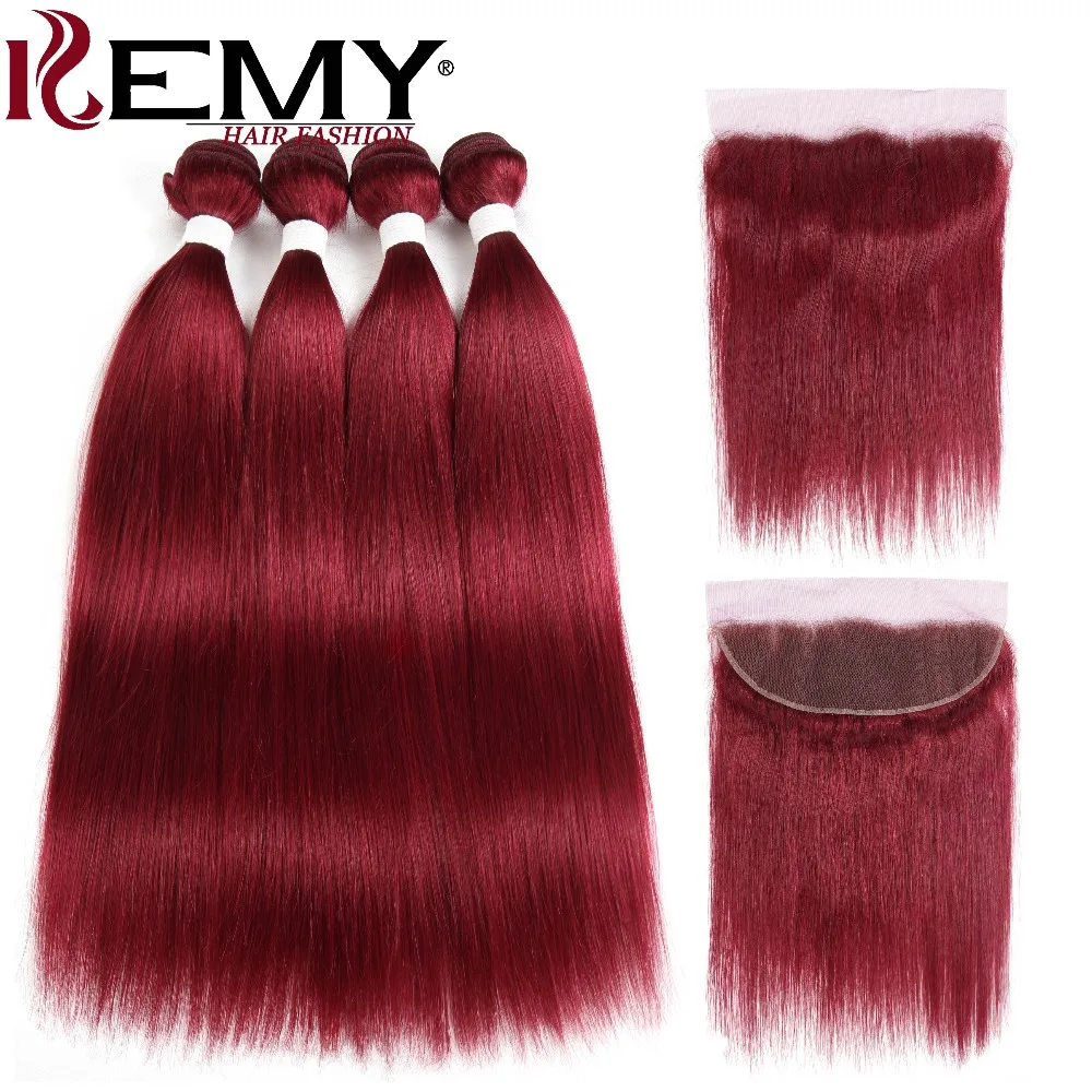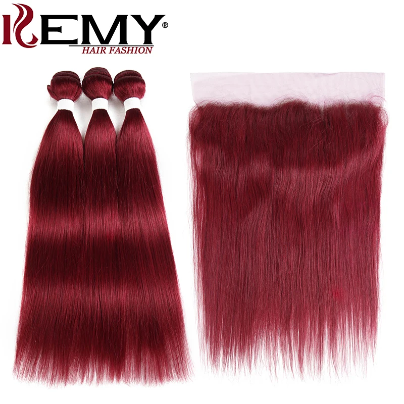 99J/бордовый человеческие волосы пряди с фронтальной 13*4 KEMY волосы 3 шт предварительно окрашенные бразильские прямые волосы ткет пучок NonRemy волосы