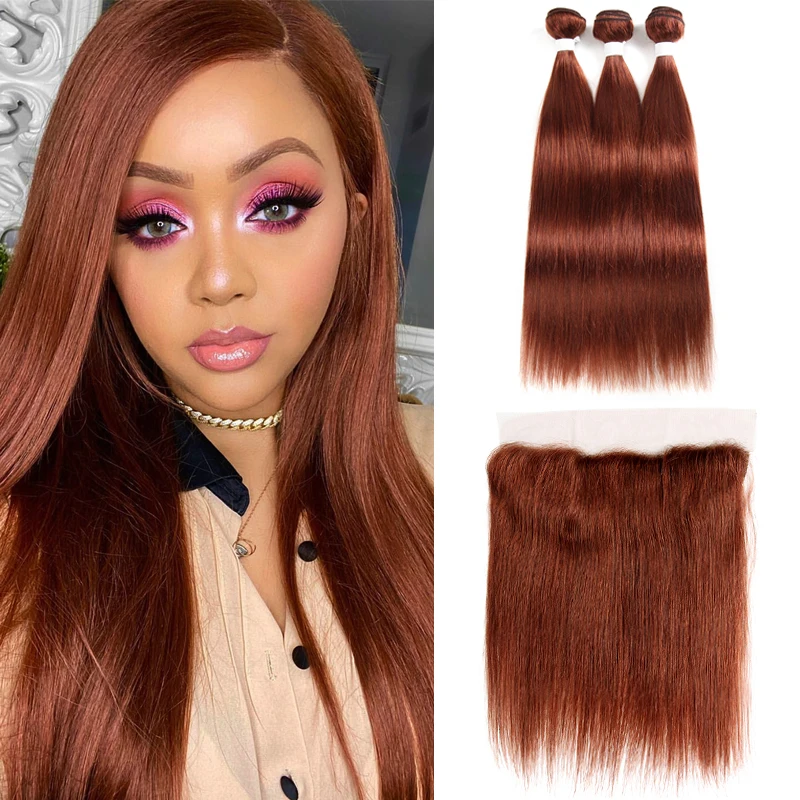 4 шт. человеческие волосы в пучке с закрытием коричневый Auburn бра...