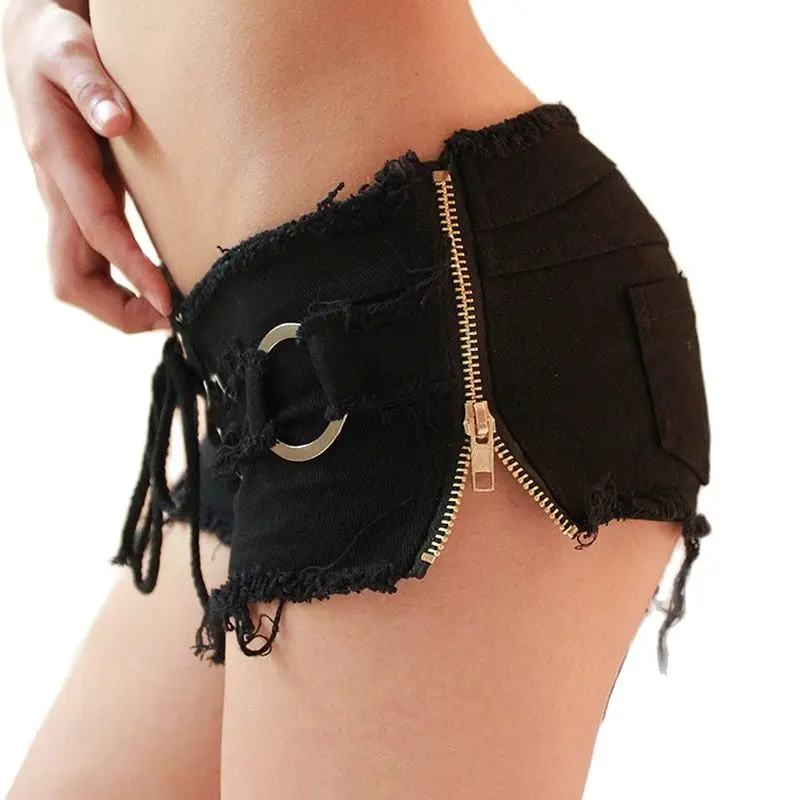Джинсовые мини-шорты женские, черные и белые, с заниженной талией, на молнии, с дырками, 2021