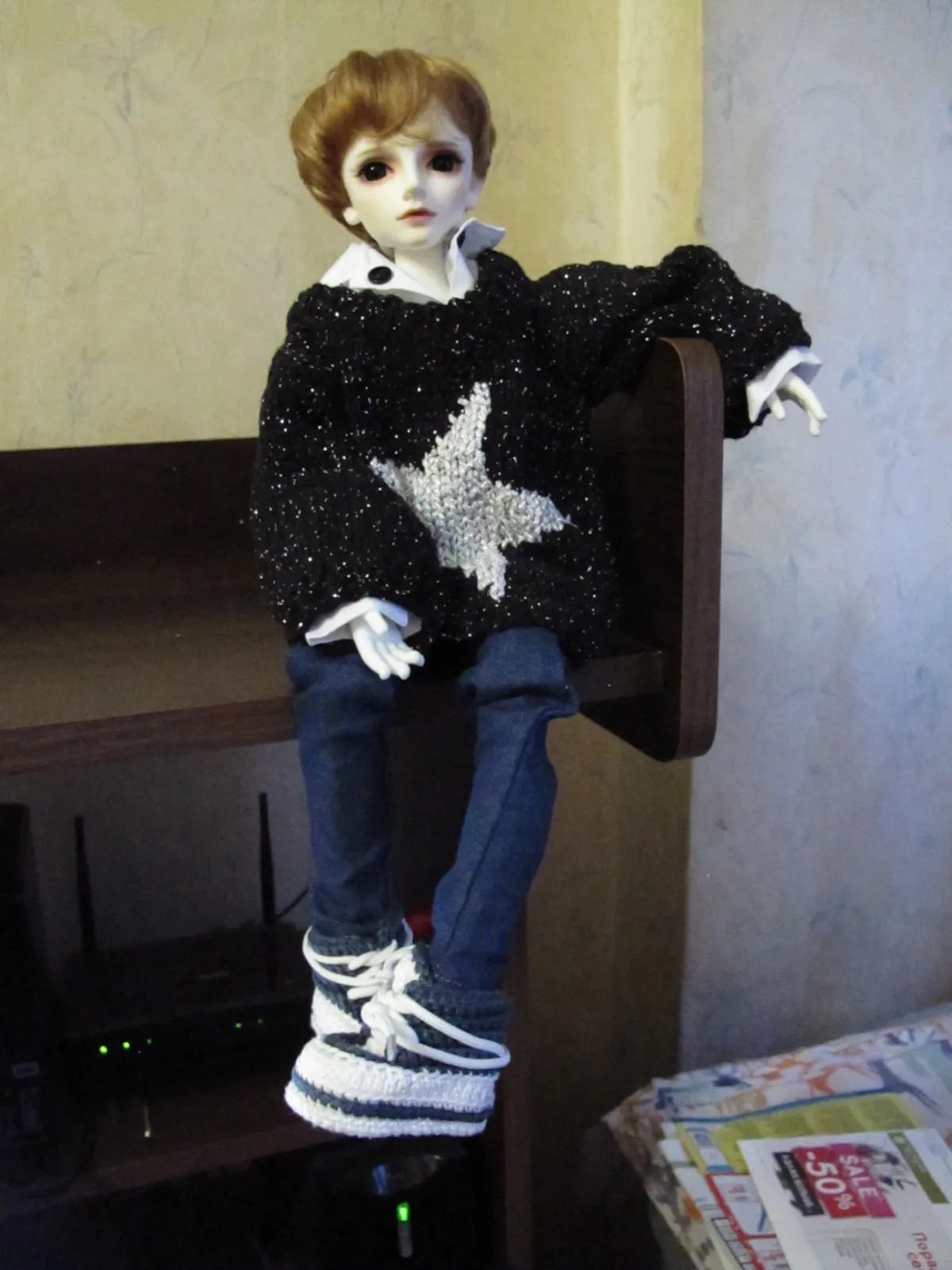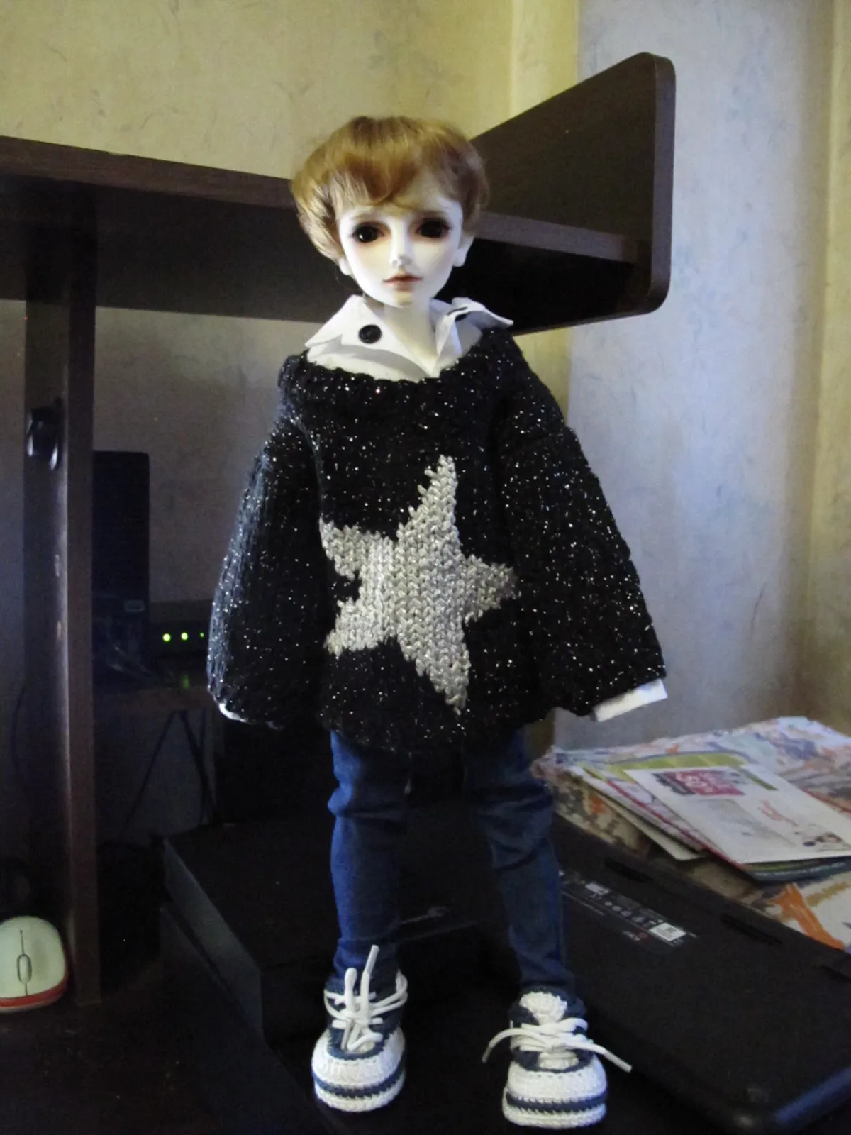 Великолепная упаковка - фирменная коробка буквально втиснута в еще одну коробку, на которой написано: "Не кантовать", "Хрупкий товар" и проч. Внутри три вида пластиковых форм, кукла буквально спеленута, отдельно замотаны лицо - как у мумии - и колени. Суставы работают хорошо - я не знаток, нюансов не подмечаю, но на мой взгляд все прекрасно. Купила ему свитер на куклу 50 см - в самый раз. Обувь моей любимой Tilda - 5,5 см - ему не налезла, у него длина стопы 5,2 см. Налезли только одни туфли, но они с бантиком :) Пока сидит в вязаных кедах 7 см, буду искать кроссы 6 см. Посылка шла 15 дней, отслеживалась, пришла в офис Билайн рядом с домой. Одежда, заказанная в тот же день, пришла на 6 дней раньше - видно, ее можно было кантовать. А что не подарили ни вторых глаз, ни ручек сменных - ну, так не обязаны же :) Рекомендую продавца.