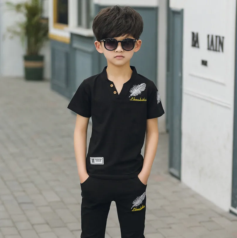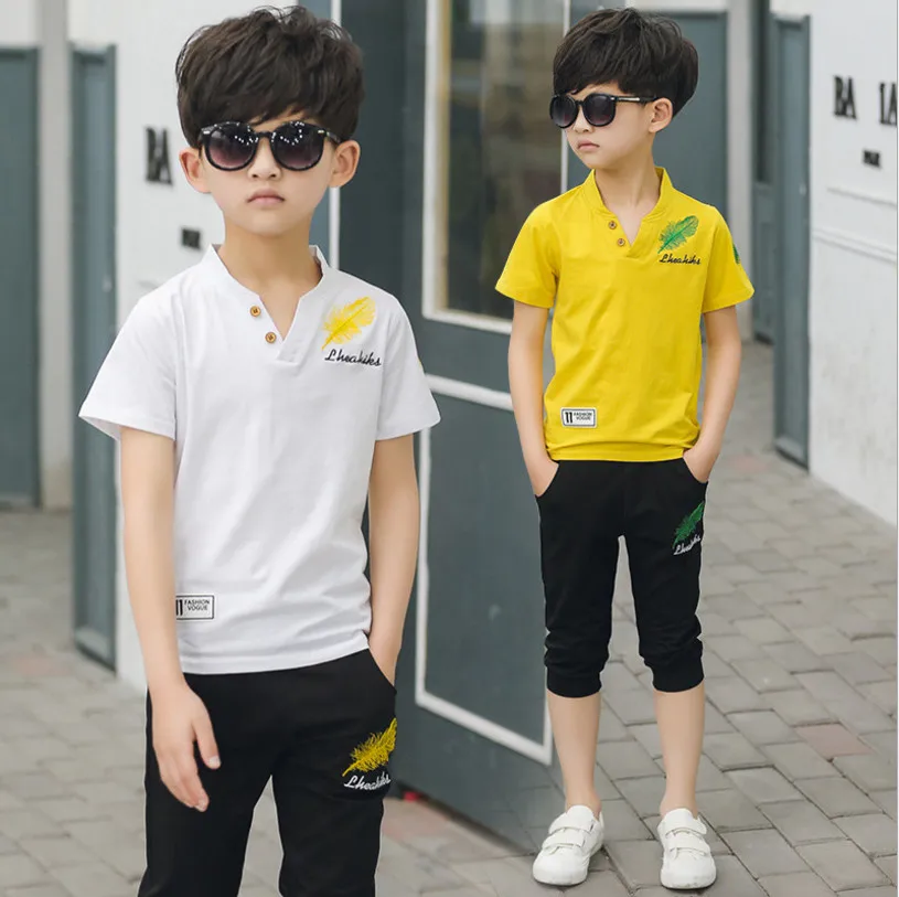 2018 Детский комплект летней одежды для мальчиков, комплекты одежды из 2 предметов, модное Радужное с принтом комплект хлопковой детской одежды, черныйбелыйчерный