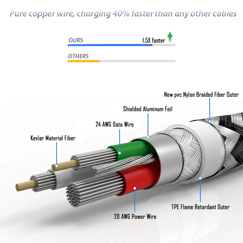 2. Прочная нейлоновая оплетка, чистая медь внутри, алюминиевая оболочка