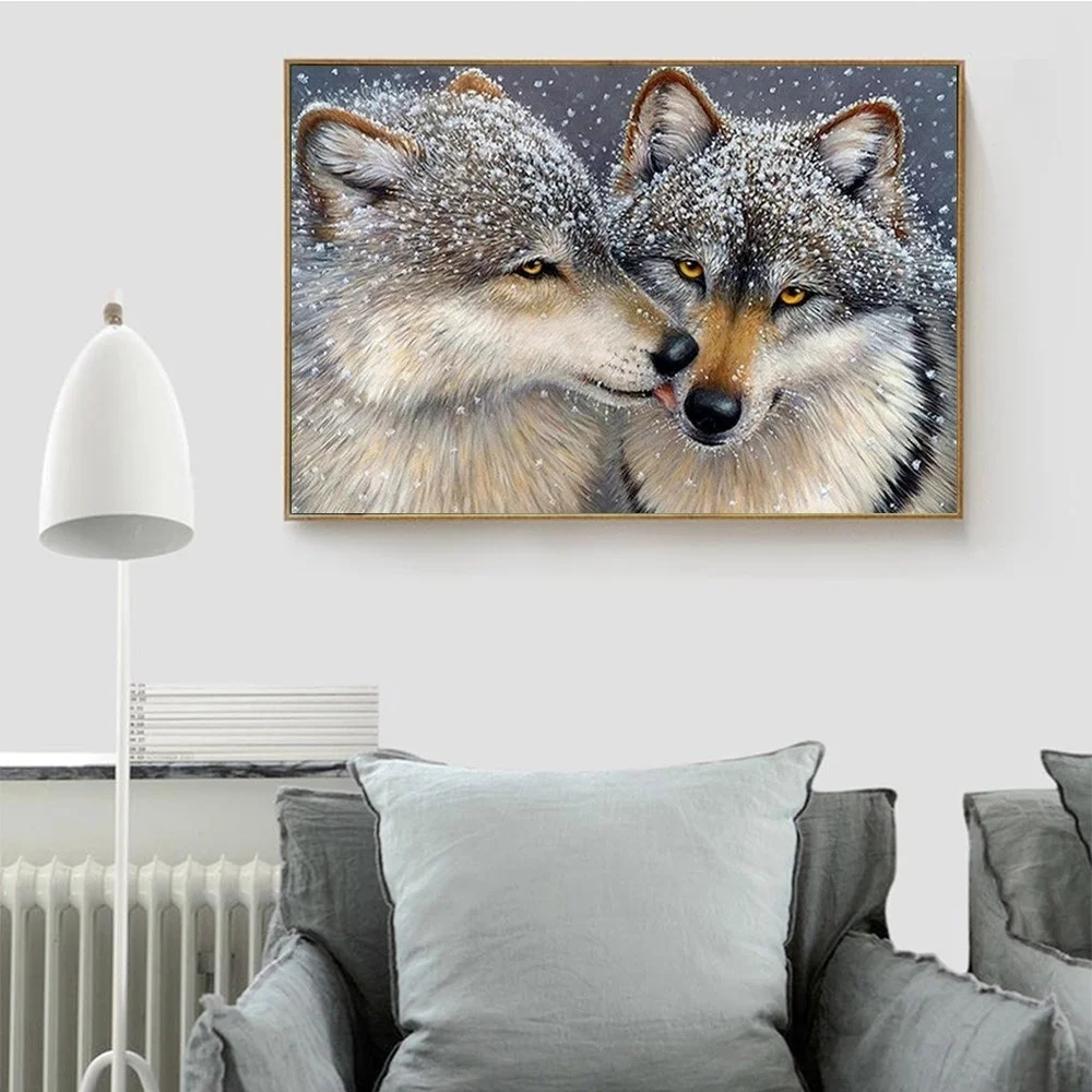HUACAN 5D DIY Алмазная картина волк снег Алмазная вышивка животное полная круглая мозаика домашний декор рукоделие