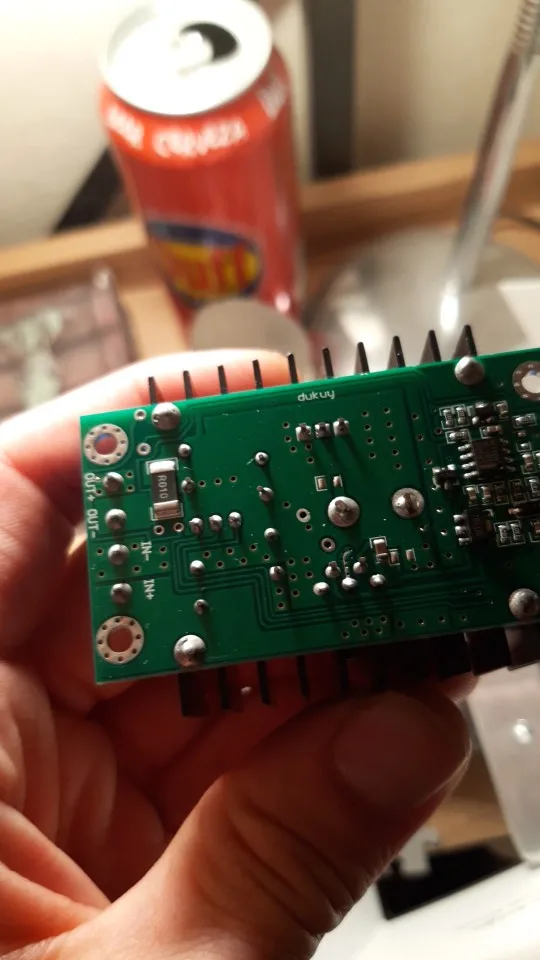 Работает, niceley кажется током Ограниченная схема зарядного устройства, потому что светодиод идет зеленым на 10% от установленного тока. Я использую его в качестве светящейся вилки драйвера для cox метанола/нитро двигателя. На плате есть чип lm358 и регулятор a78l05. Два транзистора xl4016e1