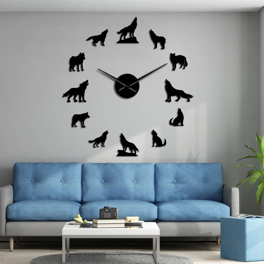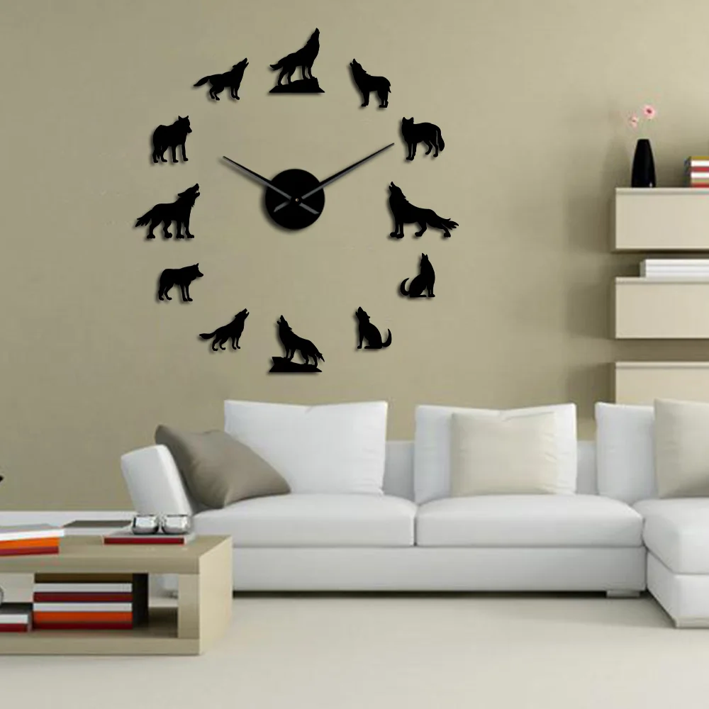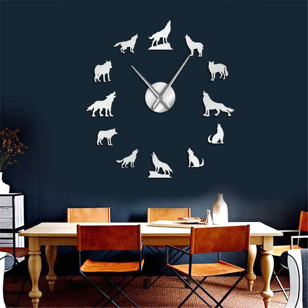 Большие настенные часы сделай сам с воющим волком, разные бескаркасные настенные часы с изображением волка, часы для домашнего декора, современный дизайн, подарок поклонникам волка