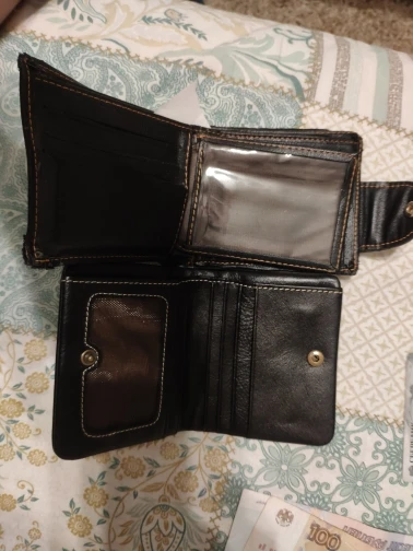 Хороший кошелек, выглядит как кожа, купюры входят, доставка быстрая.