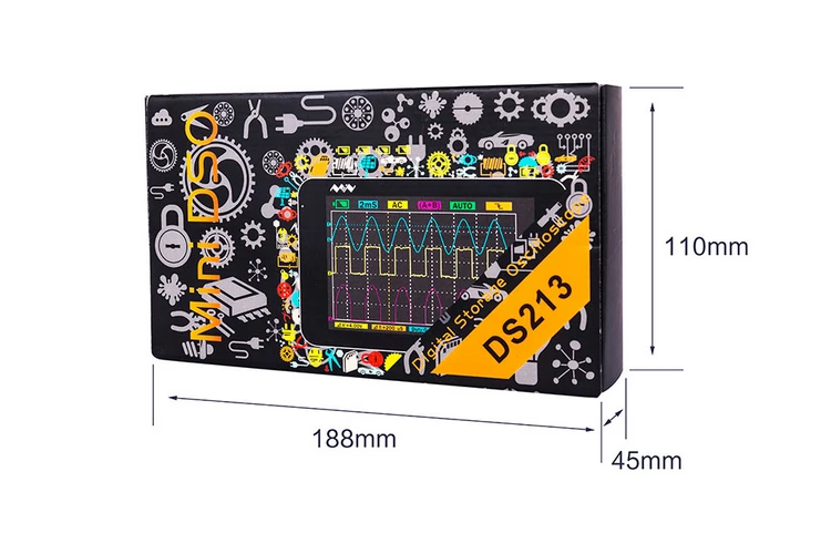 ПосылкаЦифровой осциллограф DS213-1 шт.1 x зонд X101 x зонд X11 х USB кабель1 отвертка1 х чехол1 х Руководство пользователя