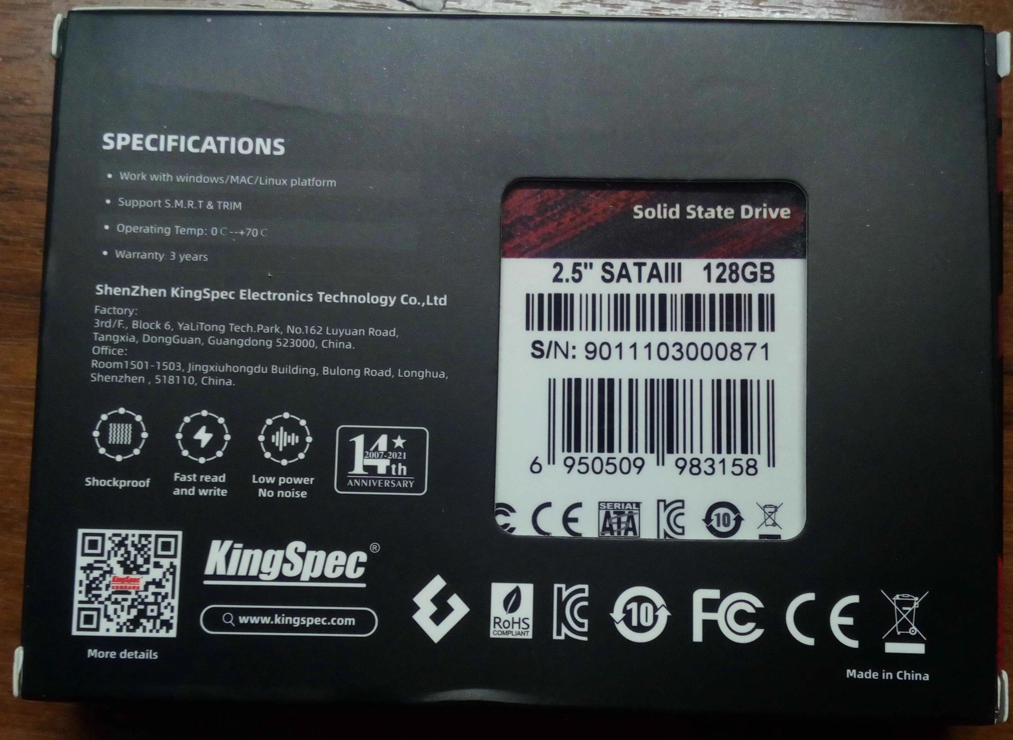Страна: BR SSD Capacity: 128GB Доставка: Selection Standard 20.12.2021