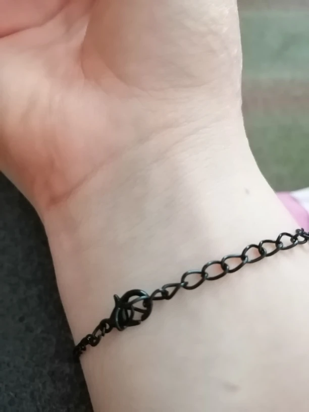 Я не очень давольна заказом, так как чёрная краска слазит, я просто провожу ногтем по браснету и он облазит и становится серебряным, но я его полностью так обчистила так что у меня теперь он серебряный!