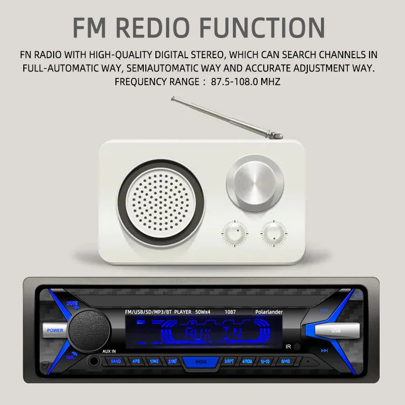 Поддержка трех диапазонного магазина радио FM1-FM2-FM3, и может установить 18 радиостанций. (Радиочастота: 87,5-108 МГц)