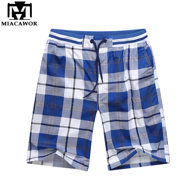MIACAWORНовые летние модные клетчатые пляжные шорты, хлопковые повседневные мужские шорты с эластичной резинкой на талии, мужские бермуды, большие размеры K817
