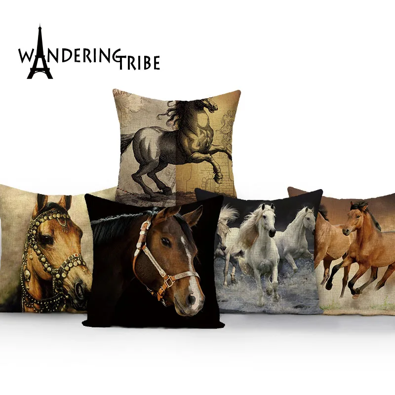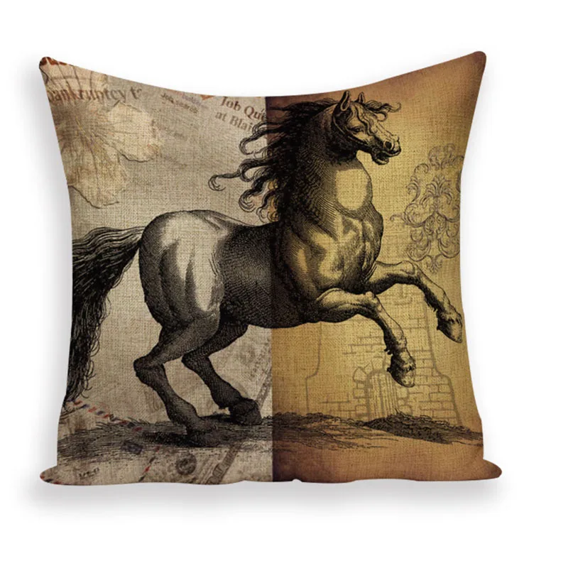 Наволочка для подушки в стиле животного, винтажная хлопковая льняная наволочка с принтом лошади, квадратная наволочка, вязаные подушки, наволочка, индивидуальный пошив