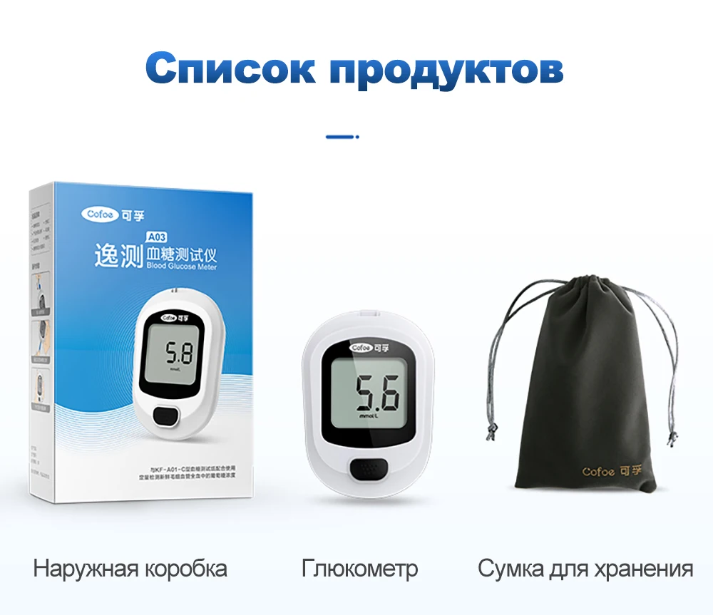 Измеритель уровня сахара в крови Cofoe Yice с тест-полоской и ланцетом, 50100 шт.