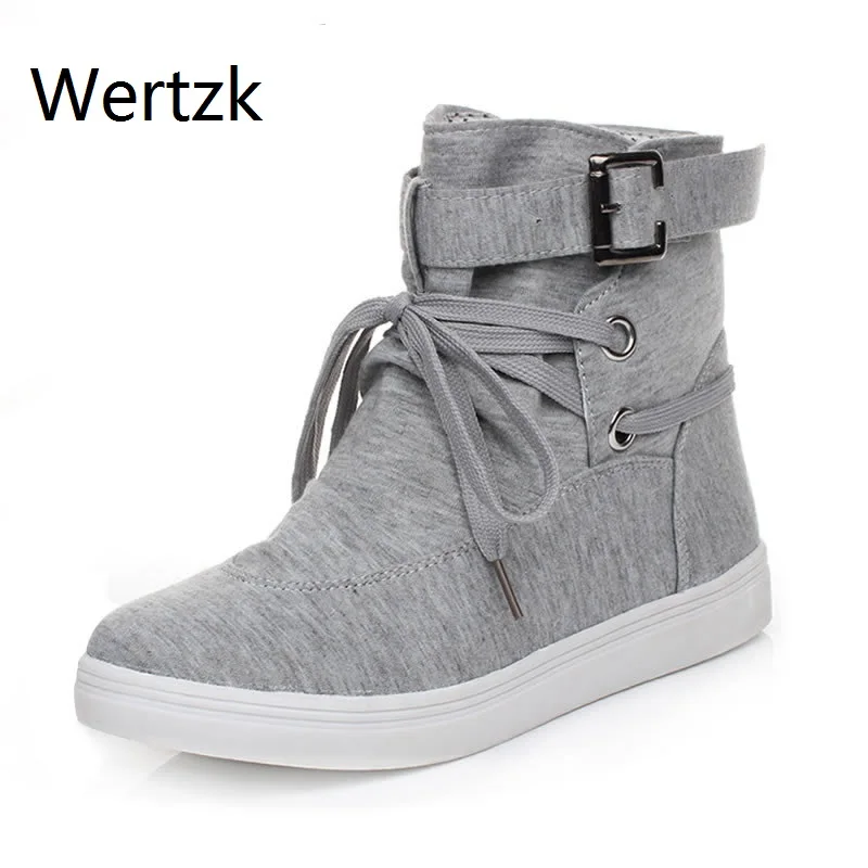Женские парусиновые ботинки Wertzk, однотонные ботильоны, черные и серые, на платформе, для осени, 2018